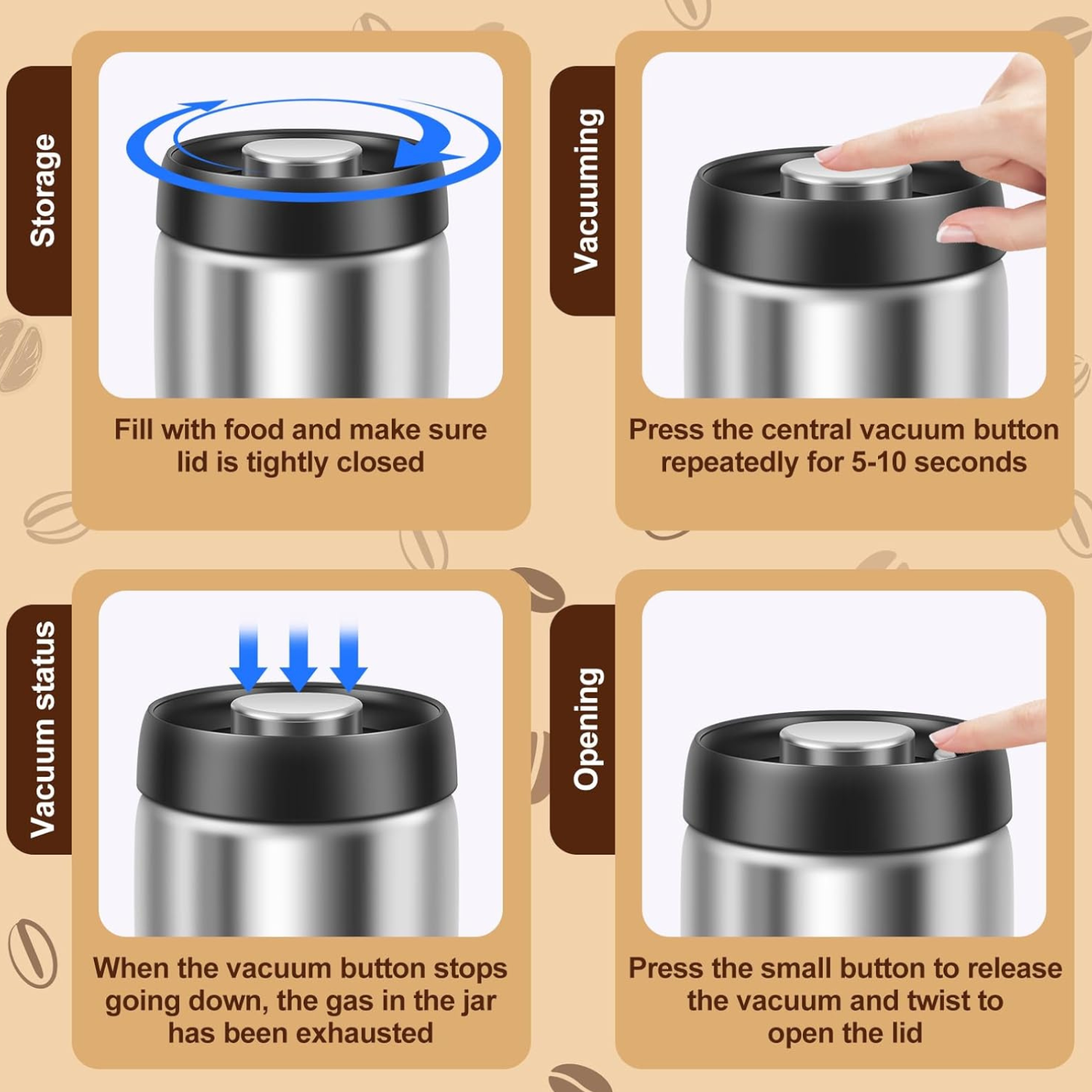 - Exclusivo contenedor con sistema de almacenamiento de café al vacío.