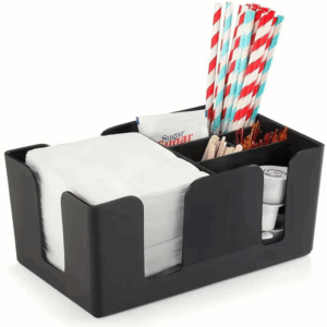 - Nuestro organizador es la solución práctica para mantener servilletas, removedores, pajillas y accesorios siempre al alcance.